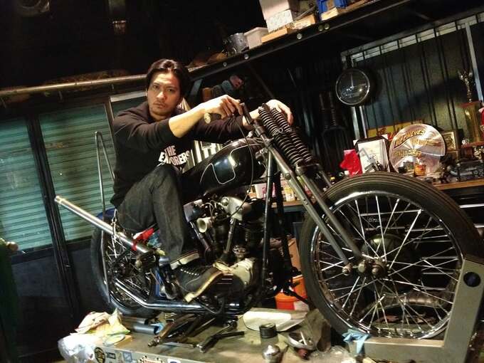 バイクに乗るショットを公開しました。