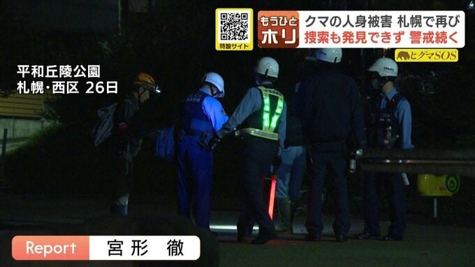 被害があったのは26日午後8時ごろ。住宅街にある平和丘陵公園で、犬の散歩をしていた43歳の男性が、前から来たクマに襲われました。