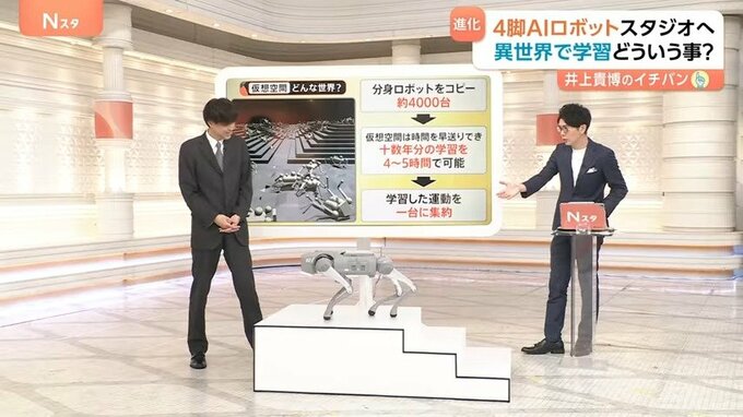 「『階段をのぼる』など、いろいろな動作を仮想空間で学習します」というのは、昔からありました。