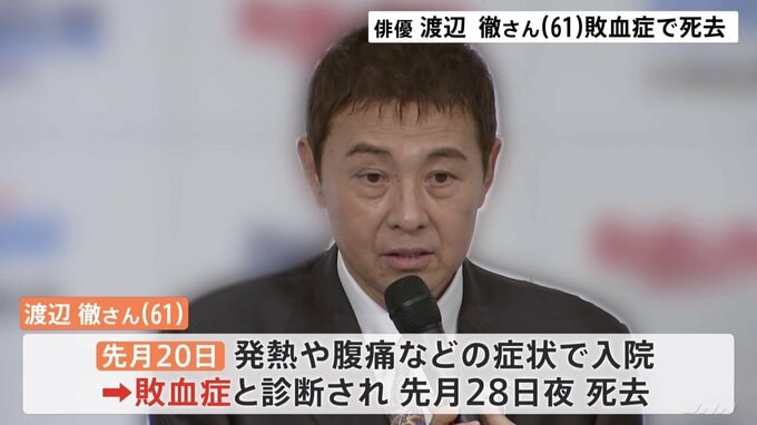 訃報です。タレントで俳優の渡辺徹さんが敗血症のため亡くなりました。61歳でした。渡辺徹さんは、テレビドラマ「太陽にほえろ!」の新人刑事役で人気となり、歌手・タレントとしても幅広く活躍していました。妻の…