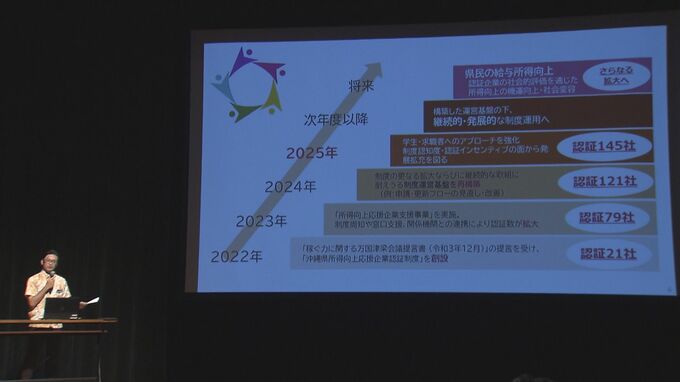 県は、企業の収益を従業員に還元して給与の向上に積極的に取り組む企業を「沖縄県所得向上応援企業」としてこれまで145社を認証しています。