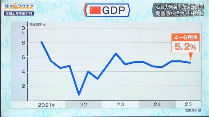 「中国経済は今、“三重苦”に悩まされている。【コロナ禍の後遺症】がずっと残っていて、不動産バブルが崩壊した後の【不動産不況の長期化】。そこに来たのが【トランプ関税】。この三つが、いずれもまだクリアできていない。公式統計ではGDP成長率は5%となっているが、最近の状況見ると“0%に近い成長”になっているのではと感じる」