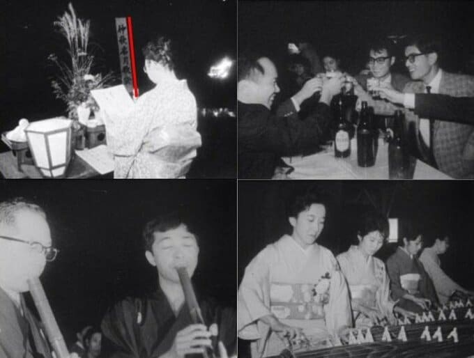 TBSには1963年の中秋の名月の映像が残っていました。月明かりの下で、歌会やお琴・尺八による演奏会が開かれ、ビールで乾杯する様子が記録されていました。