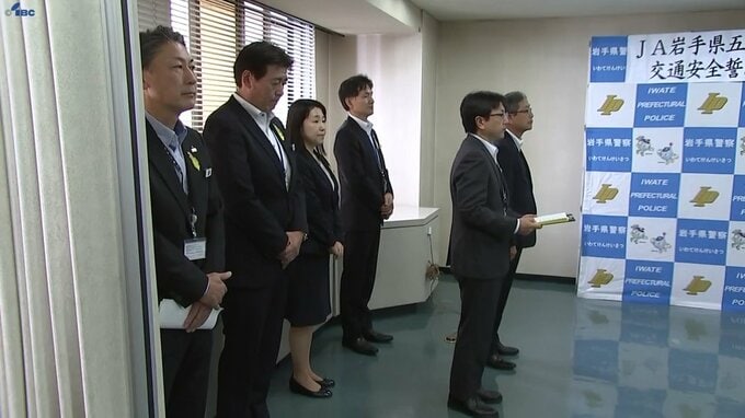 30日はJA共済連岩手の菊池秀峰県本部長ら6人が県警察本部を訪れ、加藤秀昭交通部長に誓約書を手渡しました。