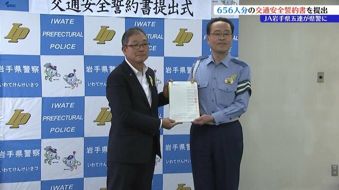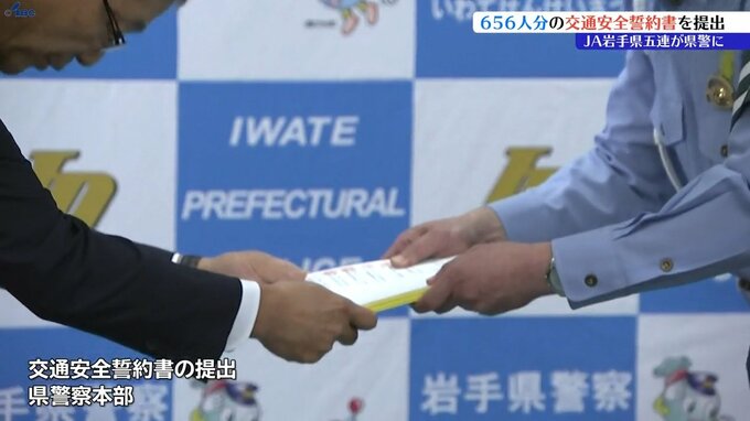 JA岩手県五連が交通安全に努める役職員の誓約書656人分を岩手県警察本部に提出しました。