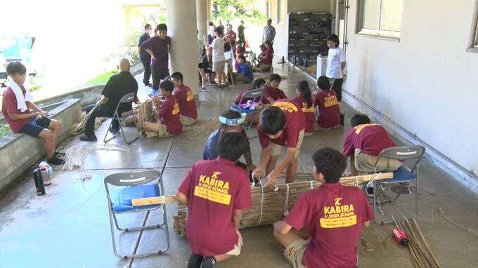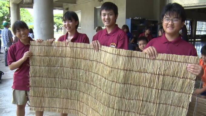 ゴザ作りに挑戦したのは、石垣市立川平小中学校の小学5年生から中学3年生の36人です。