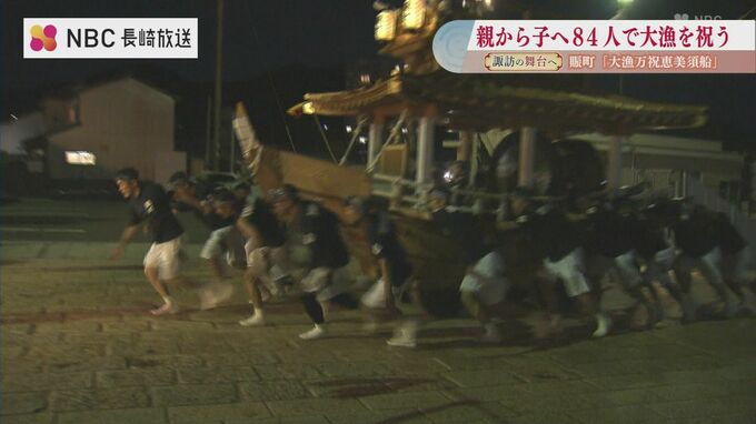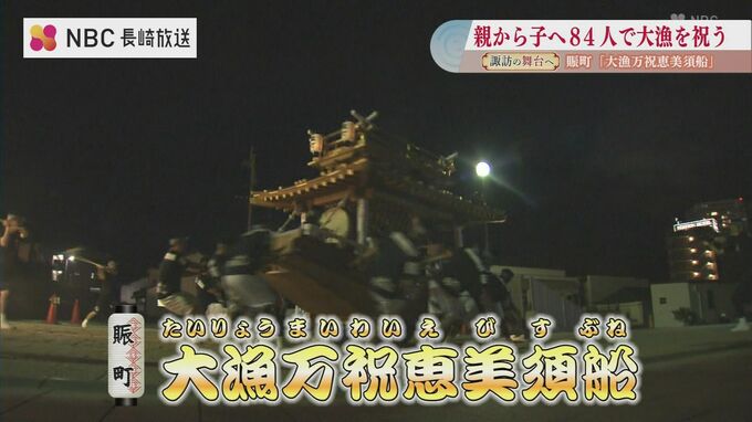 【長崎くんち2025 賑町】初の女性大太鼓×鮮魚店4代目の挑戦 生きた鯛釣る恵美須船 長崎放送 2025年10月3日(金) 12:00 国内 響くかけ声、躍動する三隻の親子船 大漁を祝う恵美須船。3隻の船を操りながら町の大人と子供が一緒に大海での漁を演じます。 「ホーエイ・エイエイヤー」 大漁を願うかけ声をあげながら、子供と大人が、勇壮な船回しを披露する、賑町の大漁万祝恵美須船です。