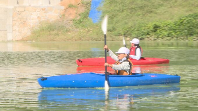 水の上から、地域の魅力を感じてもらいます。山口県宇部市の小野湖で30日、地元の小学生がカヌーを体験しました。