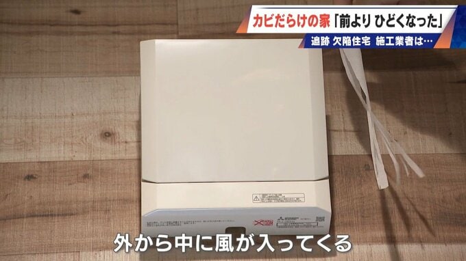取り付け間違いで、逆に外の空気を吸い込んでいました。業者は自分たちに落ち度があれば、直すと話していましたが…あれから1年、再びあの家へ。何か改善は行われたのか。