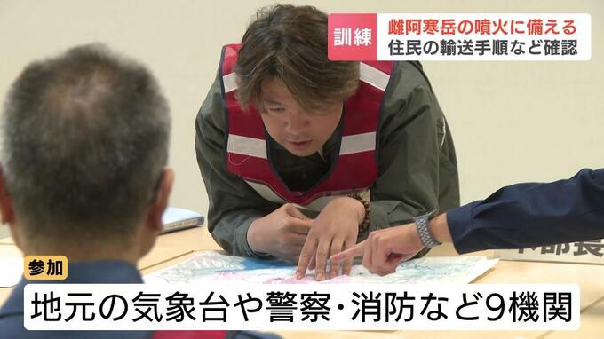 噴火警戒レベルが火口周辺への立ち入りを規制する「2」に引き上げられた北海道東部の雌阿寒岳のふもとで、噴火に備える防災訓練が行われました。