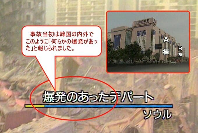 1995年6月29日、韓国ソウル特別市瑞草区にあった三豊百貨店A棟が営業中に突然崩壊しました。午後5時57分の惨事で、地震やガス爆発などの事故というわけではないのです。