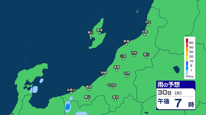 【大雨情報】新潟県内はあす1日“バケツをひっくり返したような”激しい雷雨に? 土砂災害や低地の浸水などに注意・警戒【1時間ごとの雨のシミュレーション・30日午後7時更新】 新潟放送 2025年9月30日(火) 19:00 国内 天気 30日午後11時までの雨シミュレーション