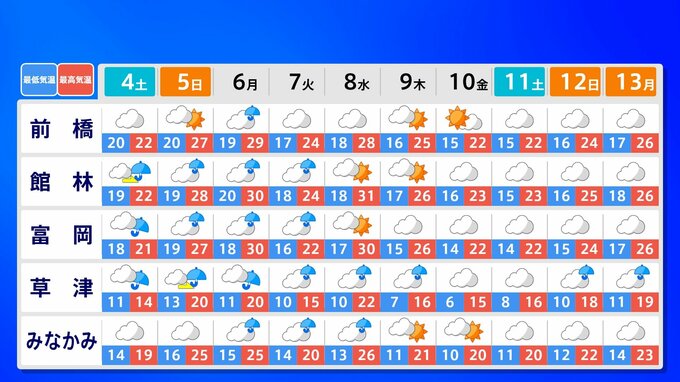 東海・北陸・甲信地方の10日間予報(名古屋・新潟・甲府 他)