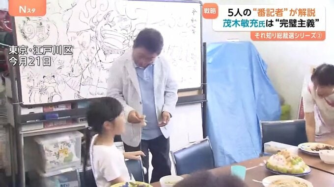 候補者討論会の際、ほかの候補者が雑談したり準備したりする様子が見られる中、茂木氏だけは下を向き、最後まで用意した原稿をチェック。青ペンで修正していました。準備万端にするというのが茂木氏のスタイルです。