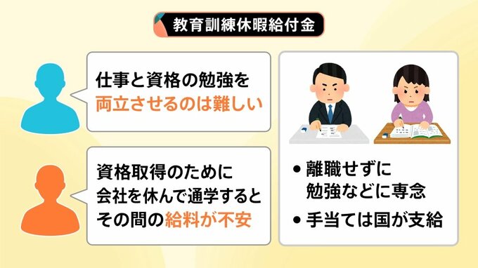 「仕事と資格の勉強を両立させるのは難しい」「資格取得のために会社を休んで通学すると、その間の給料が不安」といった声がありましたが、10月からは、離職せずに勉強などに専念でき、手当は国が支給するということです。