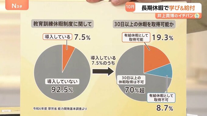 厚労省によると、「教育訓練休暇制度」を導入している企業はわずか7.5%だということです。
