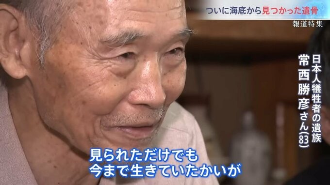 「潜っては難しいというのを何回も苦労してきて、諦めないで、伊左治ダイバーをはじめ、みなさん頑張っていただいて、やっとご遺骨に巡り会えた。本当にこんなにうれしい日はない」