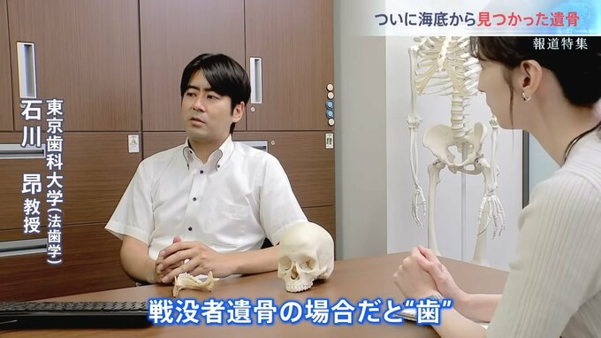 「(Q.DNA鑑定をする上で、特に個人の特定に至りやすい骨の部位があるか?)戦没者遺骨の場合だと“歯”。歯の中の神経とよく言われる部分、そこからDNAがとれる。周囲のかたい歯の組織、象牙質やエナメル質で強固にバリアされている。大きな長管骨=大腿骨であったり、歯が出てくれば大丈夫」
