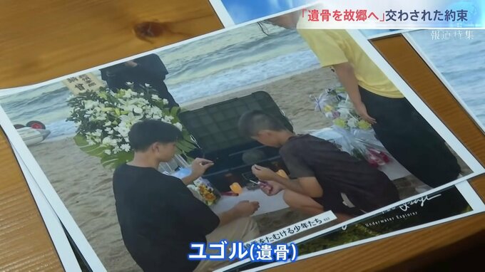 ようやく発見した遺骨。井上さんは、「私たちが見つけた遺骨だよ」とソッコさんに何度も話しかける。犠牲者に祈りを捧げたこと、海底で見つけたレンガの門、ソッコさんがすべての話を理解できているかはわからない。それでも…。