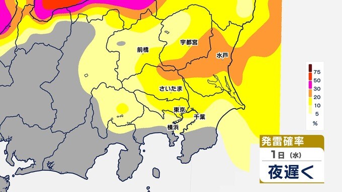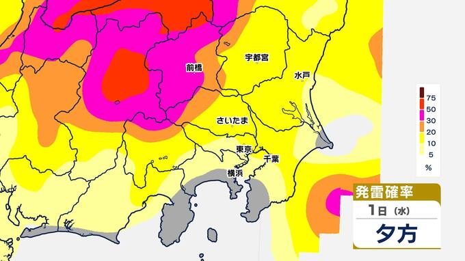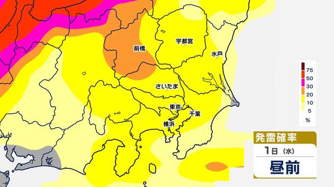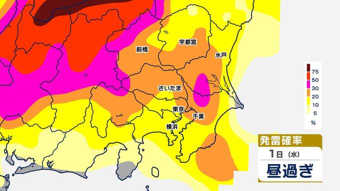 【発雷確率】シミュレーション 関東地方全域に『雷注意報』発表