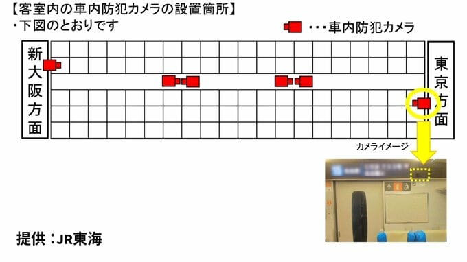 JR東海は、乗客の利便性向上に向けた技術開発の一環として来月(11月)から、「東海道新幹線の車内防犯カメラを活用した検証」を実施するとしています。