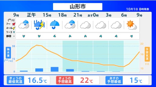 【山形天気】山形県では大気の状態が非常に不安定となる見込み 2日明け方にかけて激しい突風や急な強い雨などに注意 山形・全国の天気を画像で 気象庁 テレビユー山形 2025年10月1日(水) 10:39 国内 ■山形・全国の天気 画像はTBS NEWS DIG Powered by JNNより 画像ありの記事を最初から https://newsdig.tbs.co.jp/articles/-/2200933?display=1