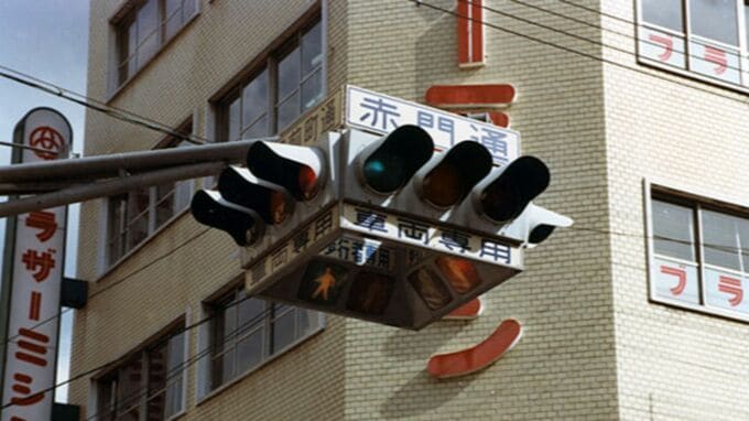 こうして開発された「UFO型」信号機は、1975年に、CBCテレビ本社に近い名古屋市の新栄小学校前の交差点で、日本初の試験設置が行われます。そして同年9月には、大須の赤門通と裏門前町通の交差点に正式に設置されることになりました。