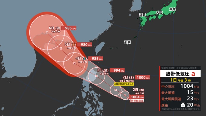 フィリピンの東の海上で、2日(木)午後3時までに、台風が発生する見込みで、今後、発達しながら西寄りに進みそうです。