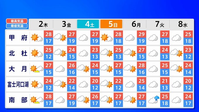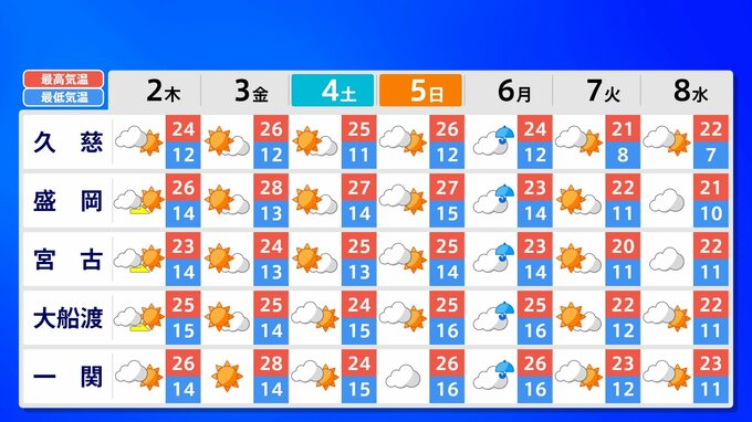 【台風情報2025】「台風のたまご=熱帯低気圧」が台風に発達へ 日本への影響は? シミュレーションでは別の「反時計回りの渦」も【雨・風シミュレーション10月2日(木)~11日(土)/ 全国各都市の週間予報】気象庁の進路予想詳しく 南日本放送 2025年10月1日(水) 19:00 国内 天気 全国各都市の週間予報 週間予報を『各県につき5つの都市』ずつ画像で掲載しています。3日(金)と6日(月)は雨の予報が多くなっています、残念ながら中秋の名月は6日(月)です。画像でご覧ください。