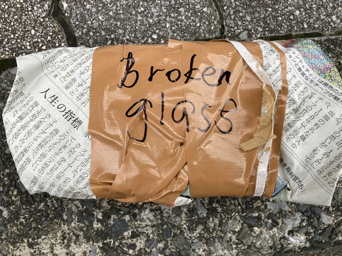 他にも、英語で『Broken glass(割れたガラス)』と書かれたごみの包みの画像を紹介し、「海外の方とかもこういう風に協力してくれる人もいます!」と呼びかけました。