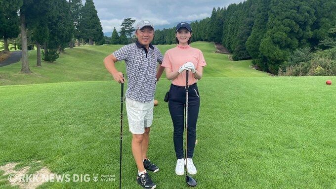 記念すべき初ラウンドに指名した同伴者は、上司であるRKK熊本放送アナウンス部長の木村和也アナウンサーだった。木村アナも無類のゴルフ好き。