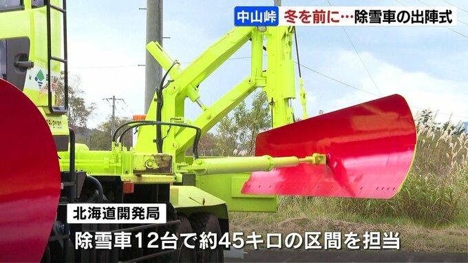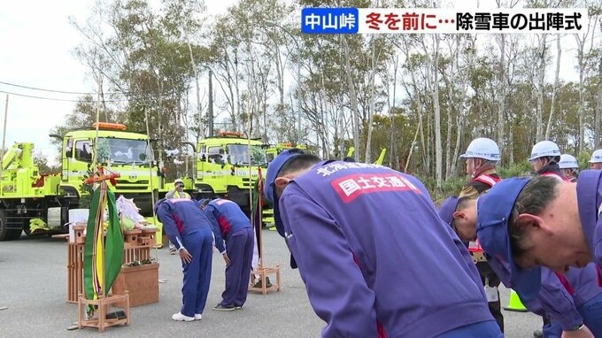 冬を前に、国道230号の中山峠では、除雪車の出陣式が行われました。