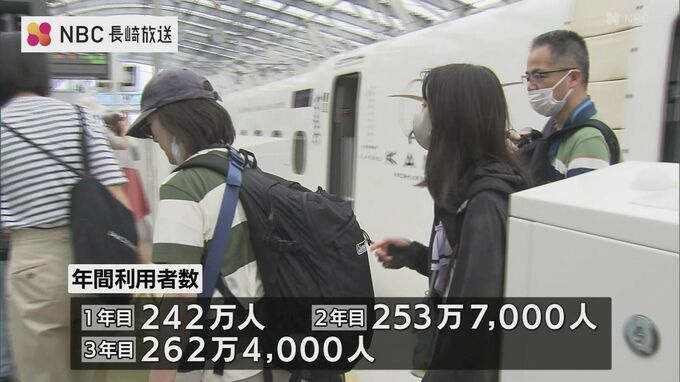 JR九州によりますと、2022年9月23日の開業から先月22日までの3年間に西九州新幹線を利用した人は、約758万1,000人で、1日平均は約6,900人とコロナ禍前の特急かもめと比べ400人ほど増加しています。