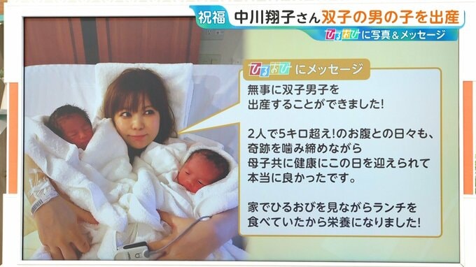 「ひるおび」ファミリーの中川翔子さんが9月30日に双子の男の子を出産!