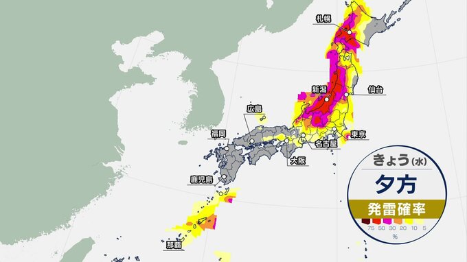 きょうの東京は最高気温が22℃予想で、6月11日以来、112日ぶりに25℃を下回り、夏日解消になりそうです。空気を冷やす雨が降るためです。きょうは地上付近に湿った空気が流れ込み、上空には寒気が入るため、関東、…