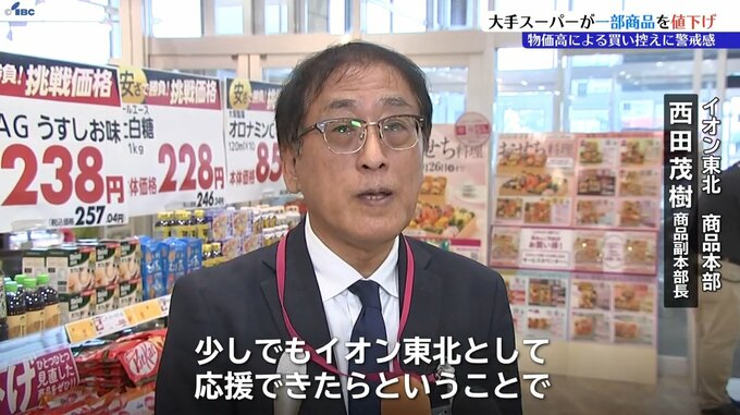 「お客様の価格に対する関心が非常に上がっている中、少しでもイオン東北として応援できたらということで10月1日より110品目の値