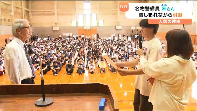 生徒:「仙台一高名誉警備員の称号を贈り深く感謝の意を表します。」