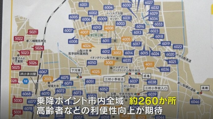 乗降ポイントは生活に身近なごみ集積場を中心に約260か所設けられ、これまでのコミュニティーバスの停留所36か所から大幅に増加していて、高齢者などの利便性向上も期待されます。