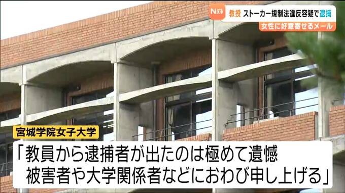 ストーカー規制法違反の疑いで逮捕されたのは宮城学院女子大学の教授の男(48)です。