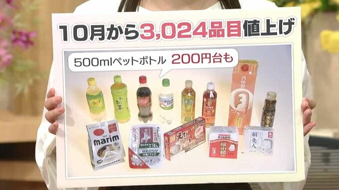 きょうから10月。今月は「値上げラッシュ」となっていて、3000品目を超す飲食料品が値上げします。10月の値上げでは、お茶や炭酸飲料などの500ミリリットルペットボトルが200円台になる商品もあるなど、帝国データ…