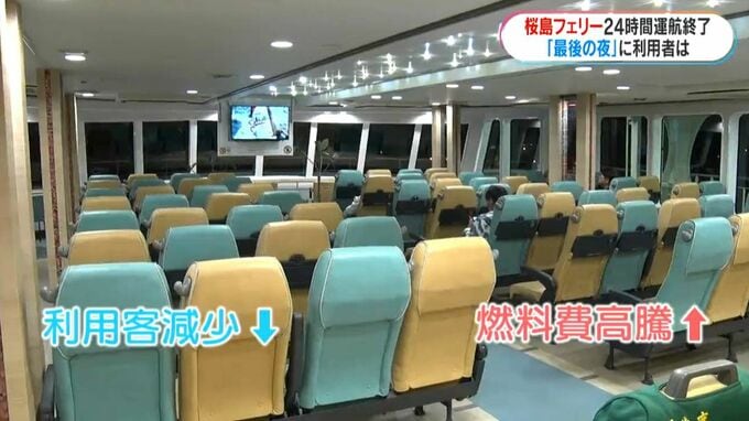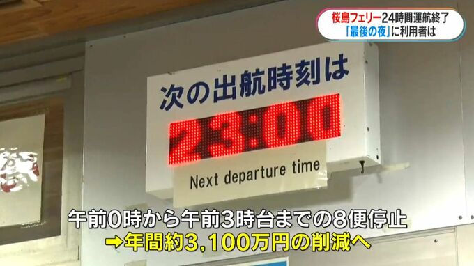 41年の歴史に幕です。桜島フェリーはきょう10月1日から24時間運航をやめました。午前0時からの3時台までの定期便8便を廃止します。最後の夜を取材しました。