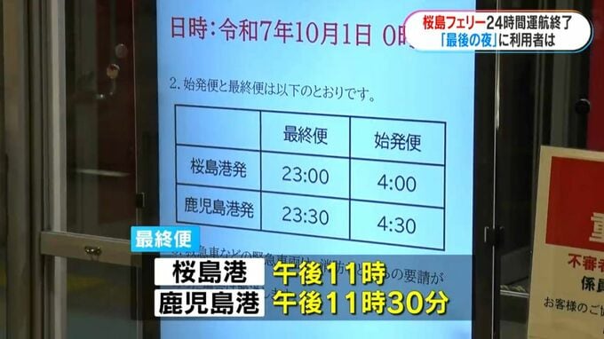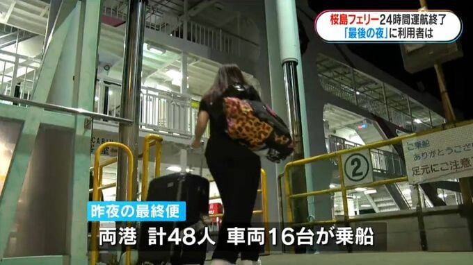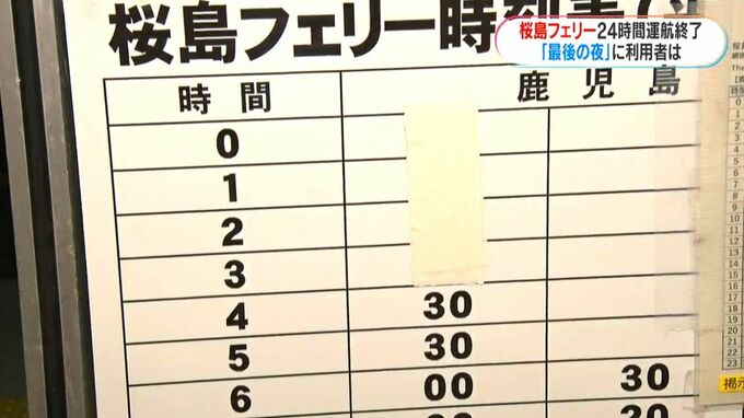 (鹿児島市から)「きょう24時間運航最終日ということで、なんとか最後は乗りたいと思って。(深夜便は)今思えば便利ですよね」
