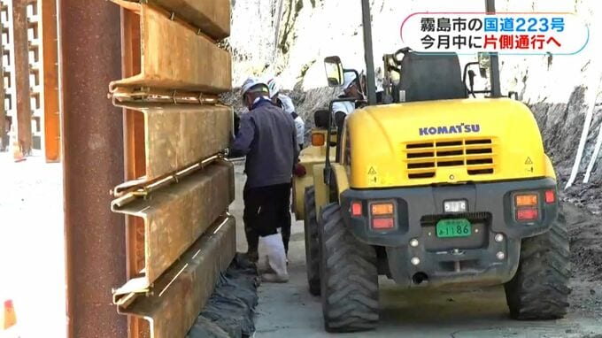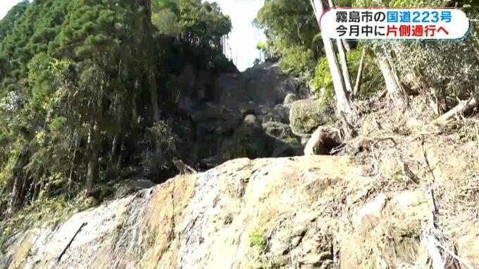鹿児島県の霧島市街地と霧島温泉郷を結ぶ国道223号は、8月の集中豪雨による土砂崩れで通行止めが続いていますが、今月中にも復旧する見通しとなりました。