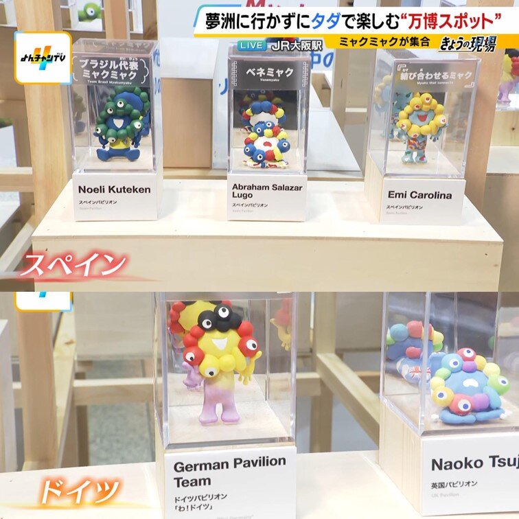 万博の関係者やパビリオンのスタッフが一つ一つ思いを込めてペイントをしたミャクミャクのフィギュアが、約120体ほど置かれているイベントで、スペインパビリオンのスタッフが作った「ブラジル代表カラーのミャクミャク」など世界の繋がりを感じられるものが展示されています。