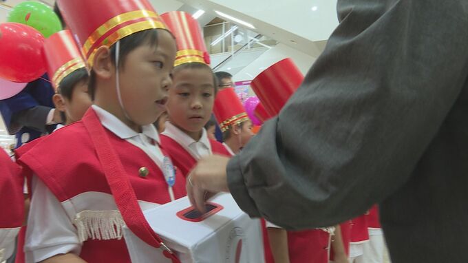 ゆめタウン山口(山口県山口市)で行われたオープニングイベントは、亀山幼稚園の園児による鼓隊演奏で始まり、レノファ山口の公式マスコットキャラクターレノ丸が「赤い羽根応援大使」に任命されました。