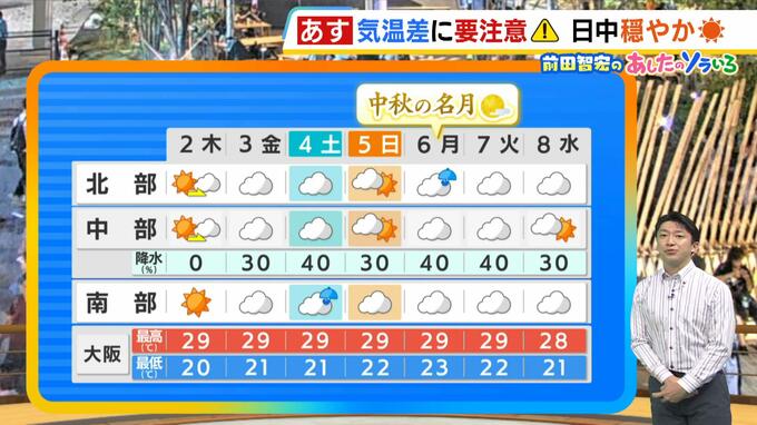 10月2日(木)の近畿地方は、穏やかに晴れて洗濯日和。朝と日中の気温差が非常に大きくなりそうです。 1日(水)は、上空に寒気が流れ込んだ影響で、大気の状態が非常に不安定になり、近畿の北部や中部のあち…