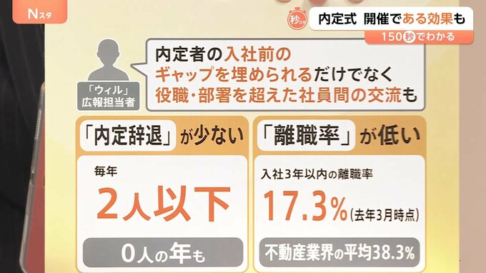 「ウィル」の広報担当者によりますと、「内定者の入社前のギャップを埋められるだけでなく、役職・部署を超えた社員間の交流もできる」ということです。