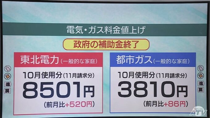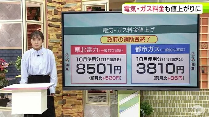 政府は9月までの3か月間、電気とガス料金の補助を行っていましたが、10月の使用分からは政府の補助金が終了します。
