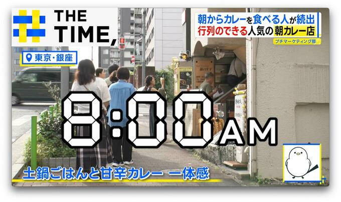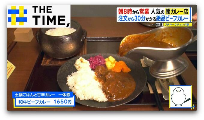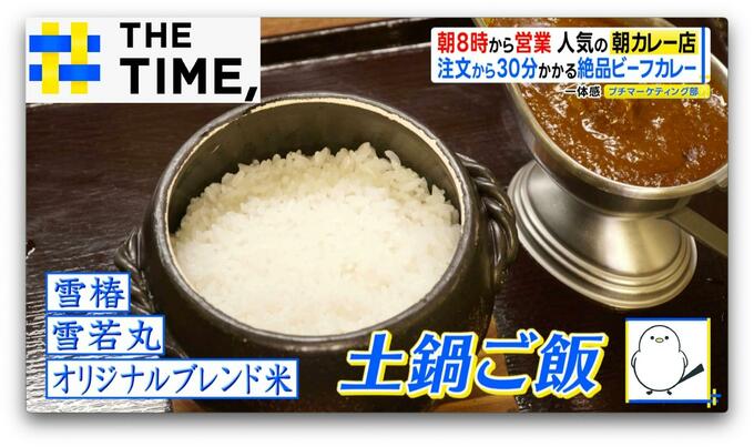 朝8時オープンの『土鍋ごはんと甘辛カレー 一体感』(東京・銀座)では、“注文してから提供まで30分かかる”朝カレーに、開店前から行列ができています。