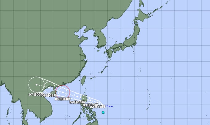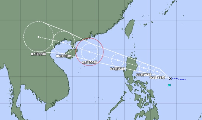 進行方向、速さ 西北西 25 km/h (14 kt)